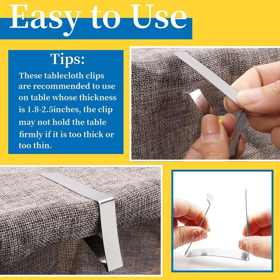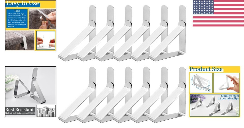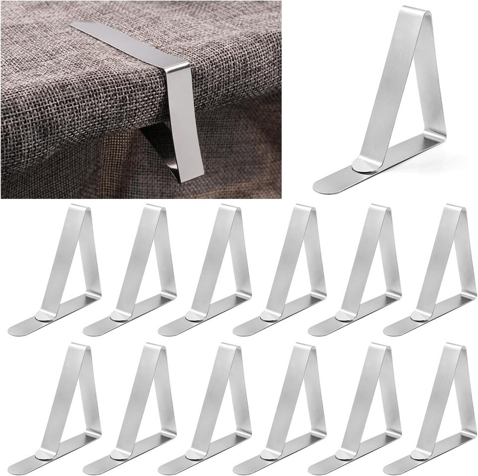 - All-Season Stainless Steel Tablecloth Clips - 12 Pack for Indoor & Outdoor Use