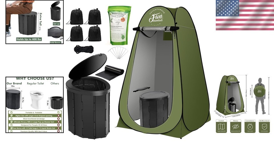 - All-in-One Camping Toilet Kit: Privacy Tent, Bags & Liquid Waste Gel Included