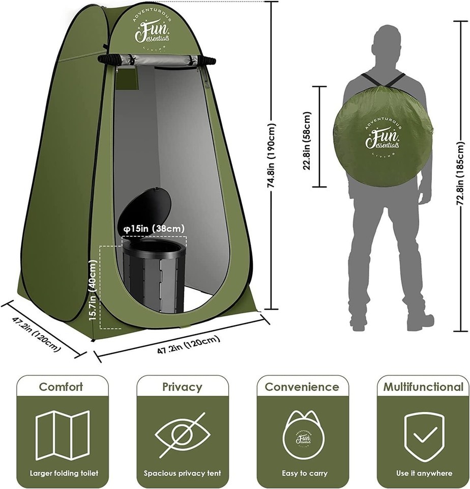 Features: Portable,Foldable,Convenient for Outdoor Use,Instant Setup,Compact Design,Easy Transportation,Privacy Tent,Washable,Comfortable Height,Larger Size,Sanitation,Emergency Use