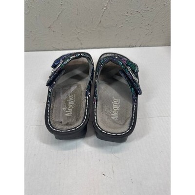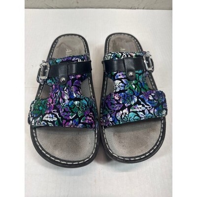 - Allegria Sandals Women Peggy Hibiscus Blue Green Metallic Floral Comfort 39 US 8