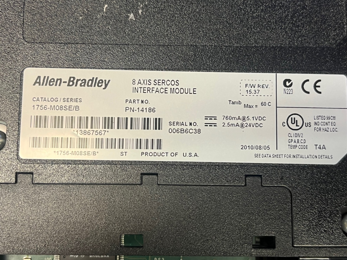 - Allen Bradley 1756-M08SE Ser B ControlLogix SERCOS Module 8 Axis PLC