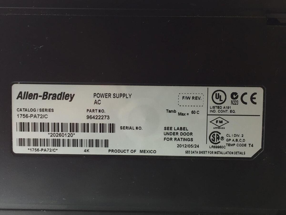 - Allen-Bradley 1756-PA72 SER.C Power Supply W/1756-A13 Slot Chassis
