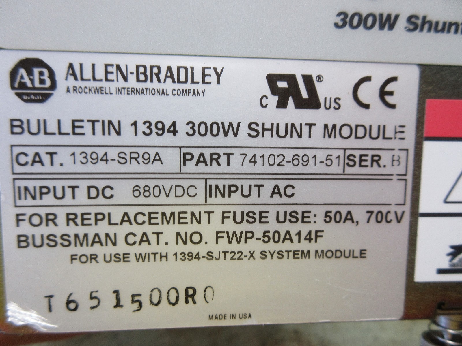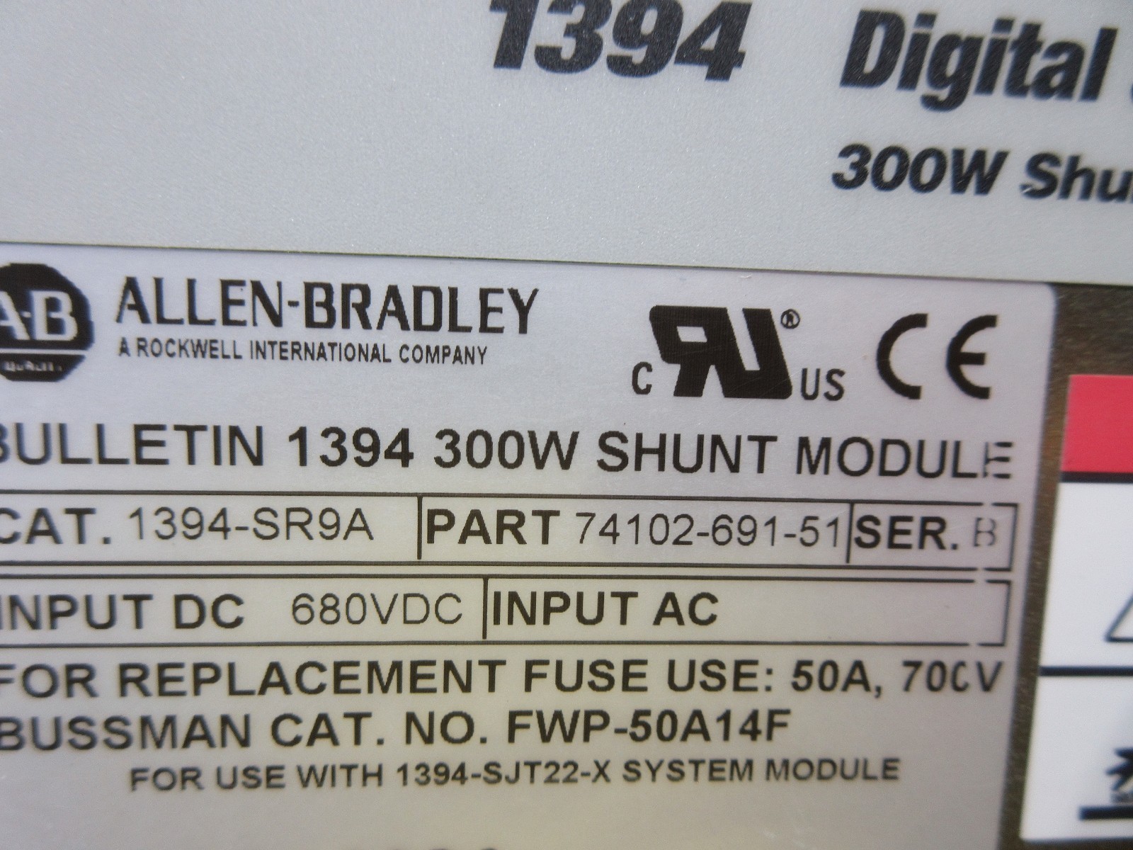 - ALLEN BRADLEY DIGITAL CONTROLLER 1394 CAT. 1394-SR9A PART 74102-691-51 SER.B CNC