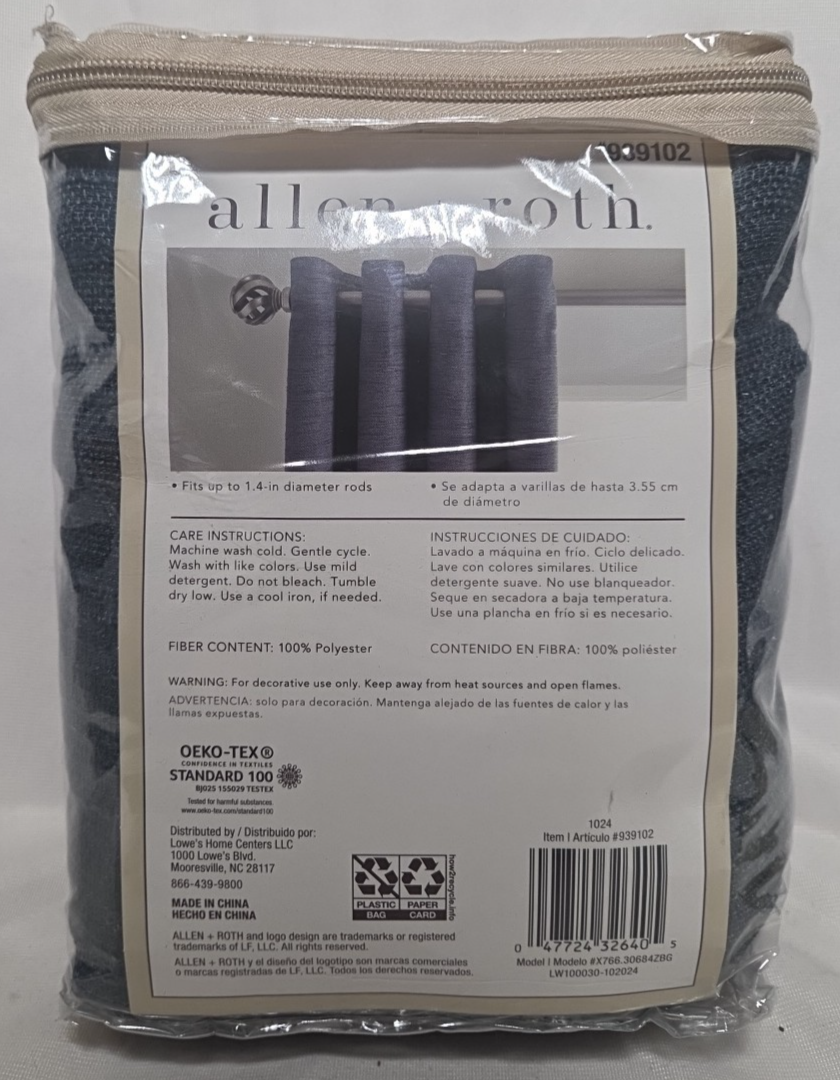 - Allen + Roth 84" Thermal Lined Room Darkening Curtain~Grommet Top~Indigo Blue
