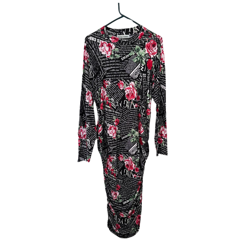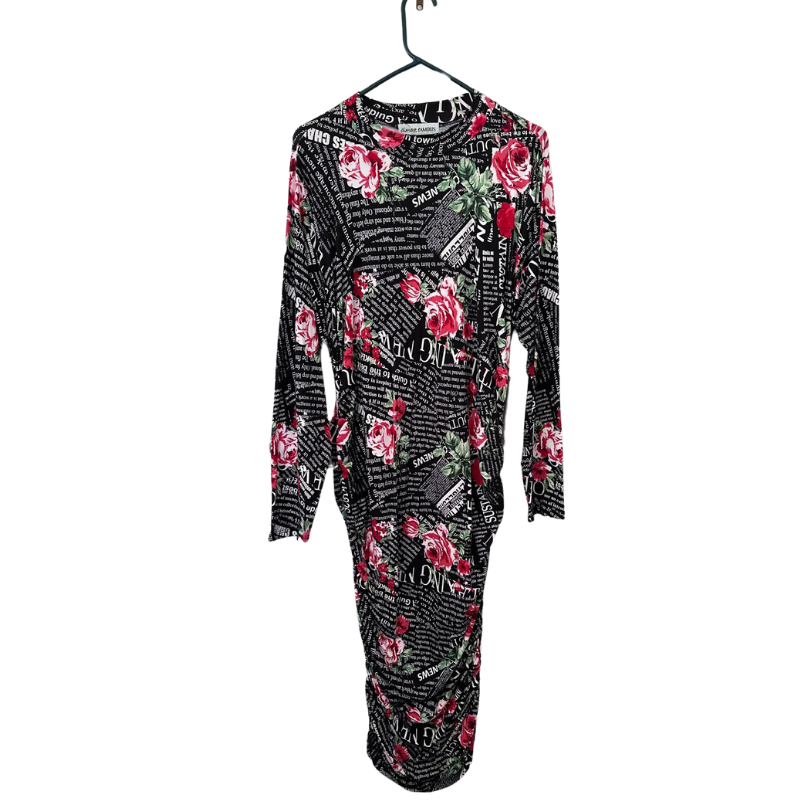 - Almost Famous 3X Black Red Rose Print Long Sleeve Midi Dress Plus Size