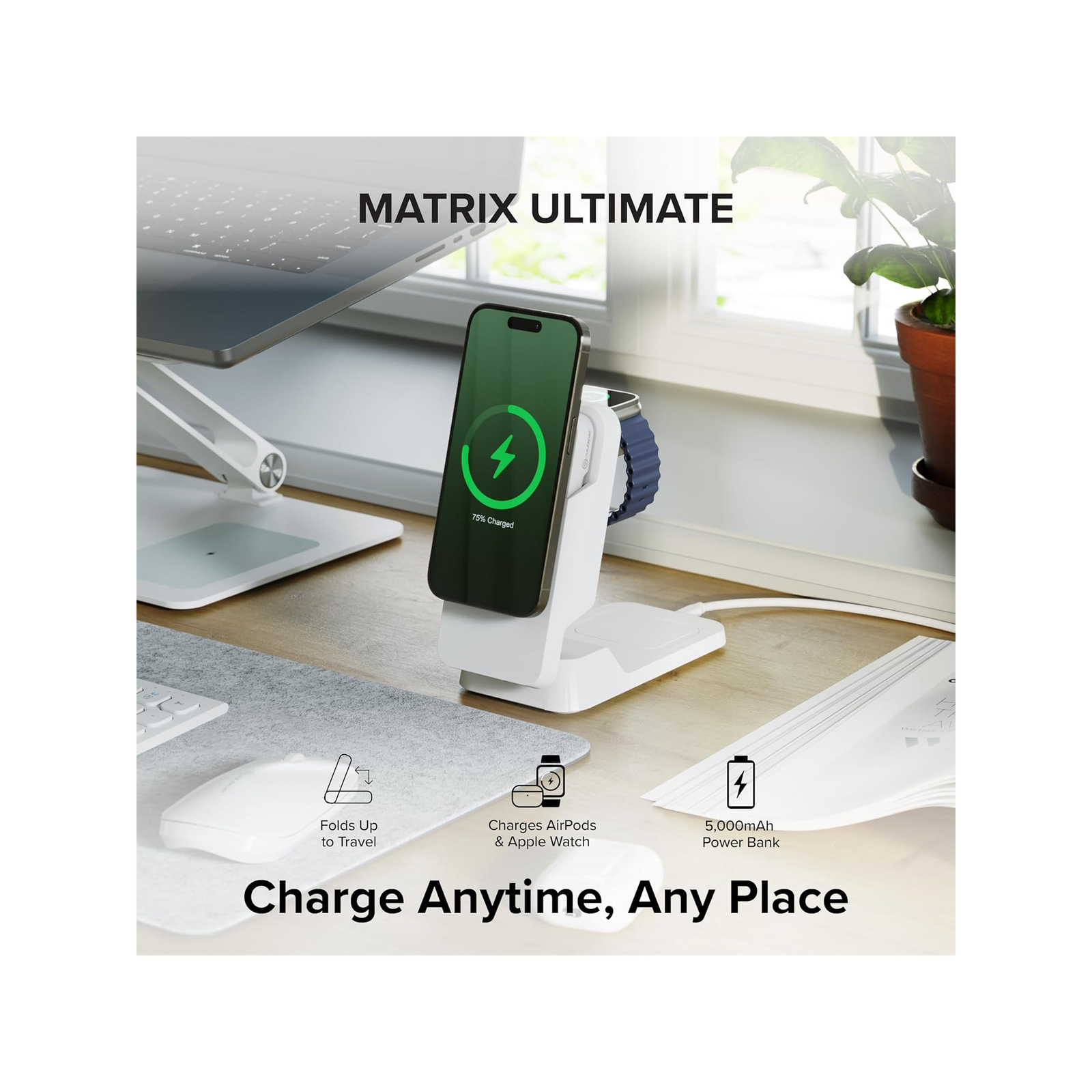 MATRIX FOLD 3 IN 1 CHARGER W/ 5000MAH MAGSAFE POWER BANK