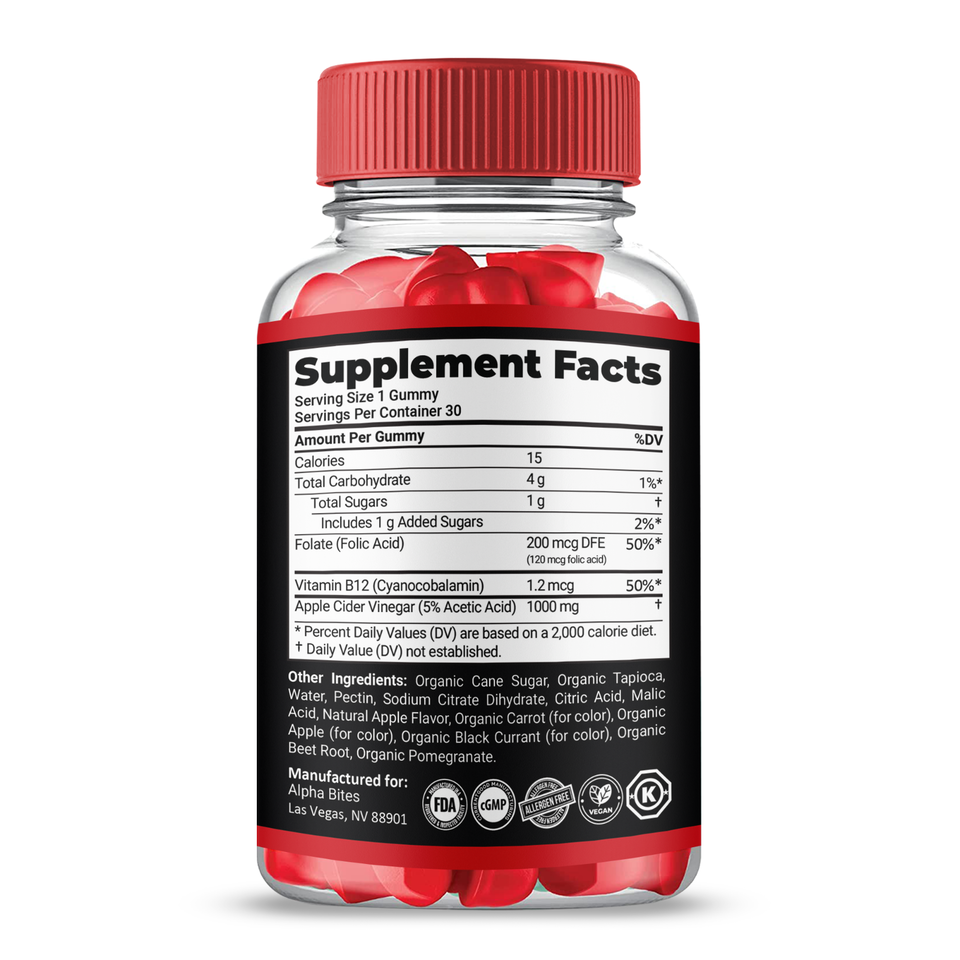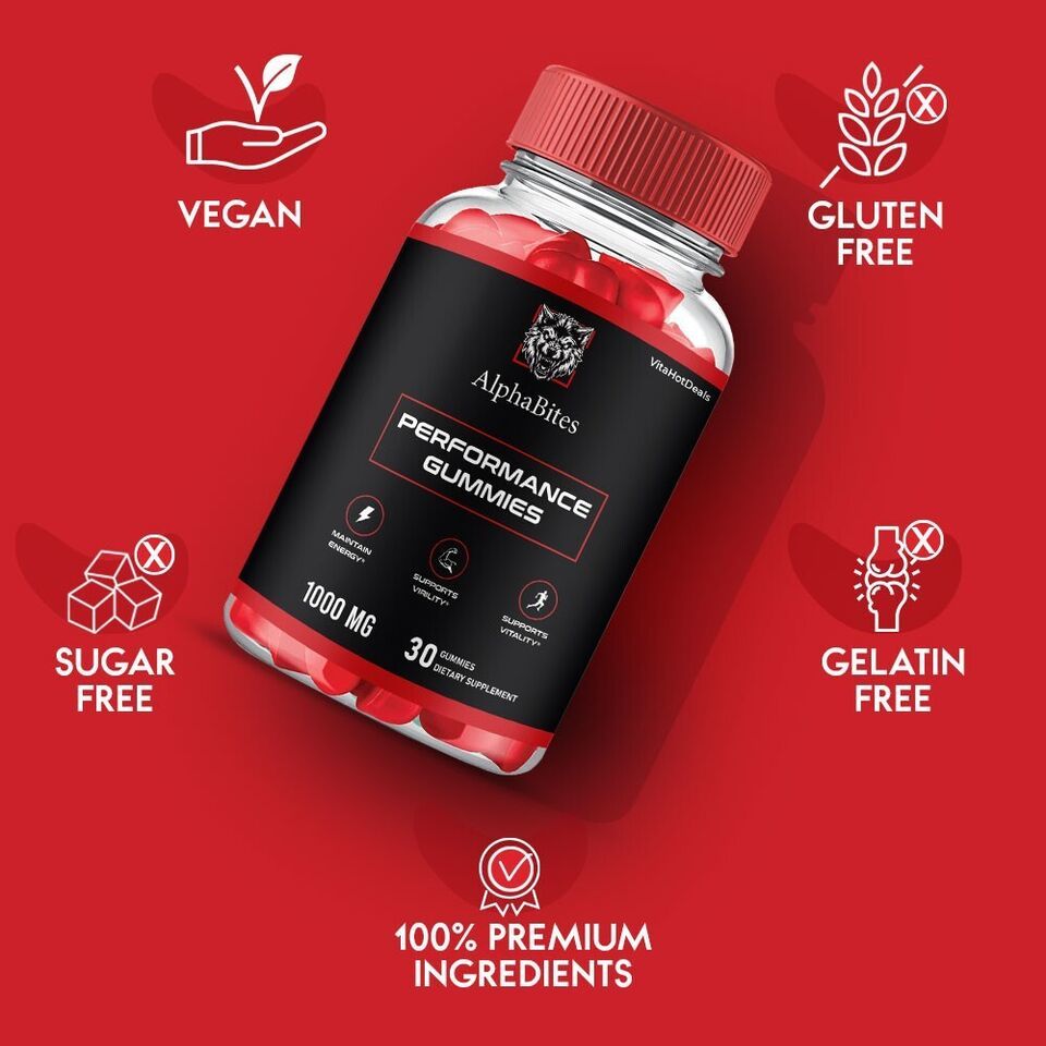 AlphaBites Performance Gummies for Men, delicious gummies are packed with the highest strength performance formula including Vitamin B12 and Folic acid, delivering essential ingredients to boost your goals. Designed for convenience and crafted with a vegan-friendly formula, these bite-size gummies are perfect for men looking to stay energized and support their overall wellness. With 30 servings in each container (1 Pack)