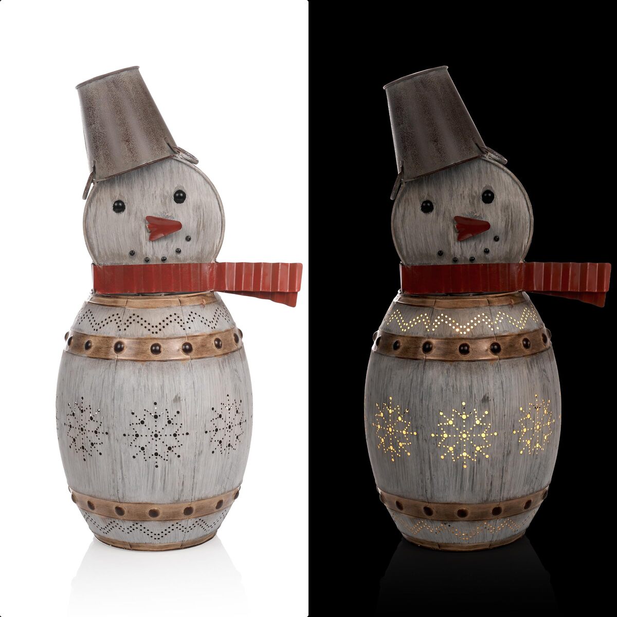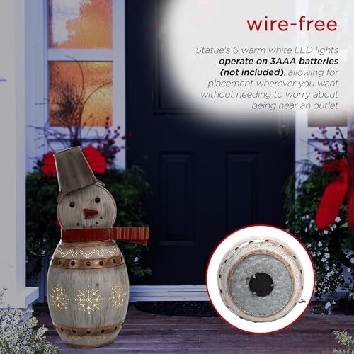 - Alpine Corporation 30" Tall Indoor/Outdoor Metal Barrel Snowman Christmas Decora