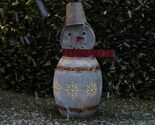 Weathered Barrel Snowman Decor with Warm White LED Lights |
