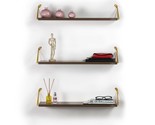 - Altai Floating Wall Shelves - Rustic Metal Bracket Triple Bookshelf