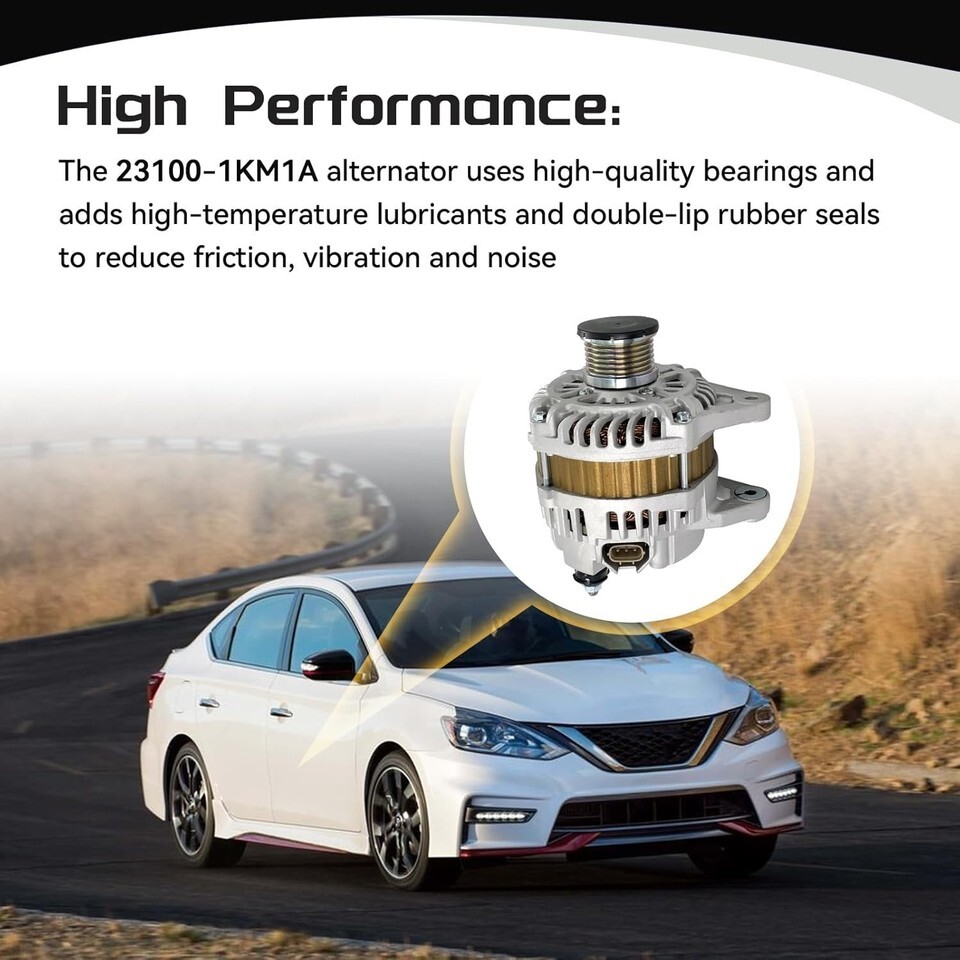? Durable and Reliable: The 23100-1KM1A alternator uses high-quality bearings and adds high-temperature material to reduce friction, vibration and noise. With higher durability, heat resistance and wear resistance, it ensures optimal performance and long-lasting durability