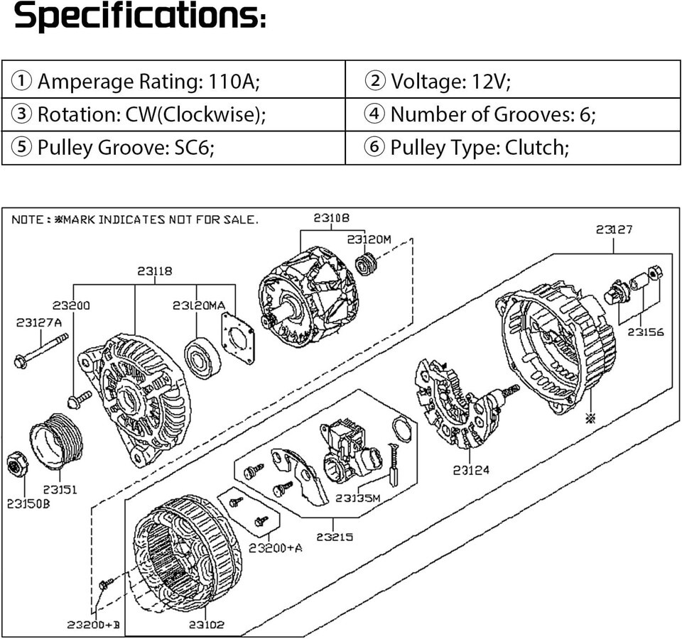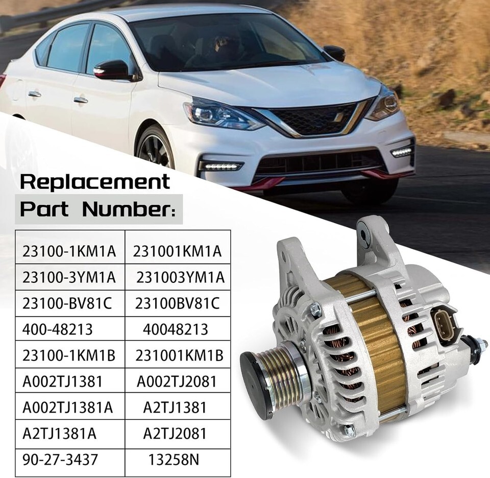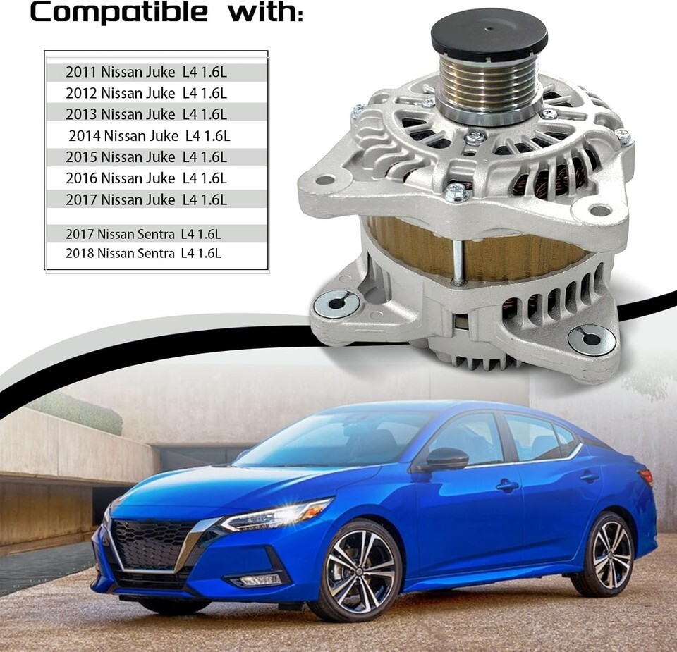 - Alternator for Nissan Juke 2011-2017 Sentra L4 1.6L 110A 6-Groove Clutch Pulley