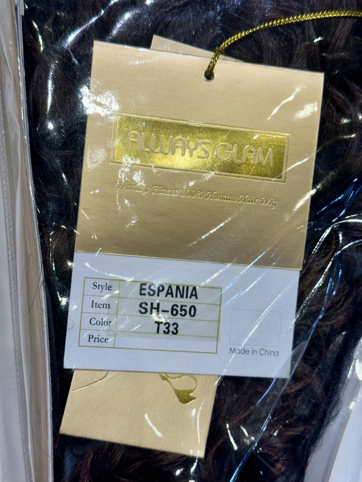 - Always Glam Espania SH-650 Human Hair Wig – Color T33 Auburn Brown – NIB