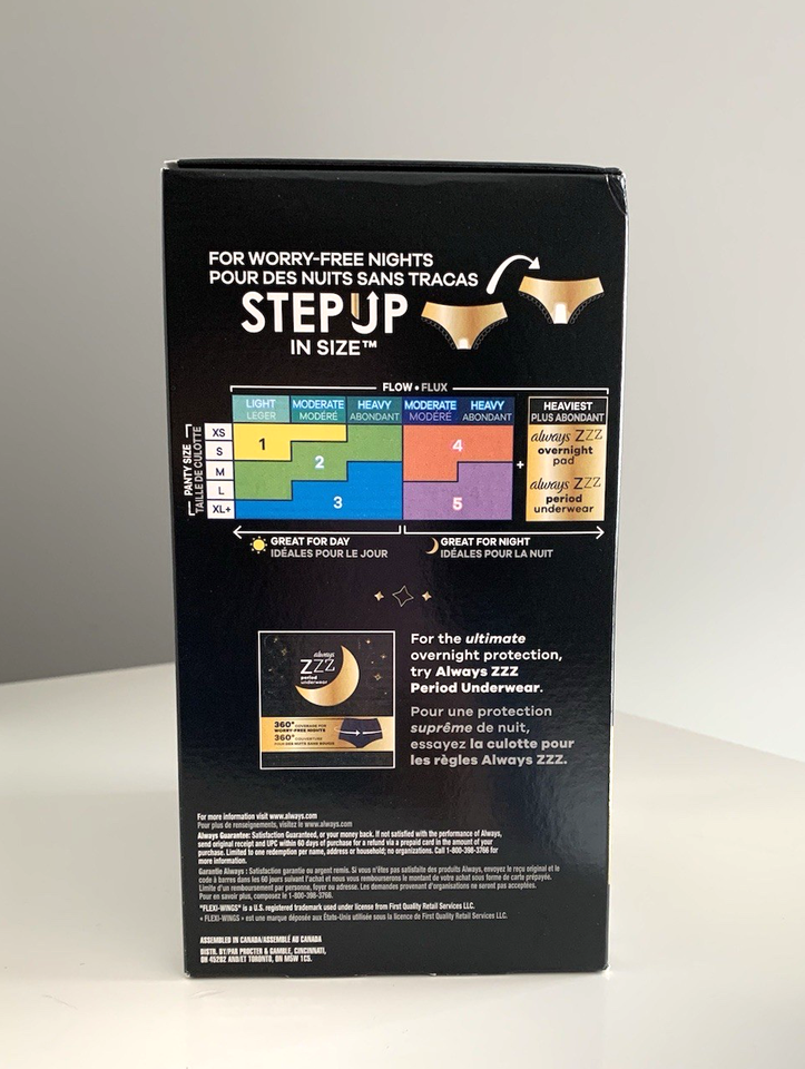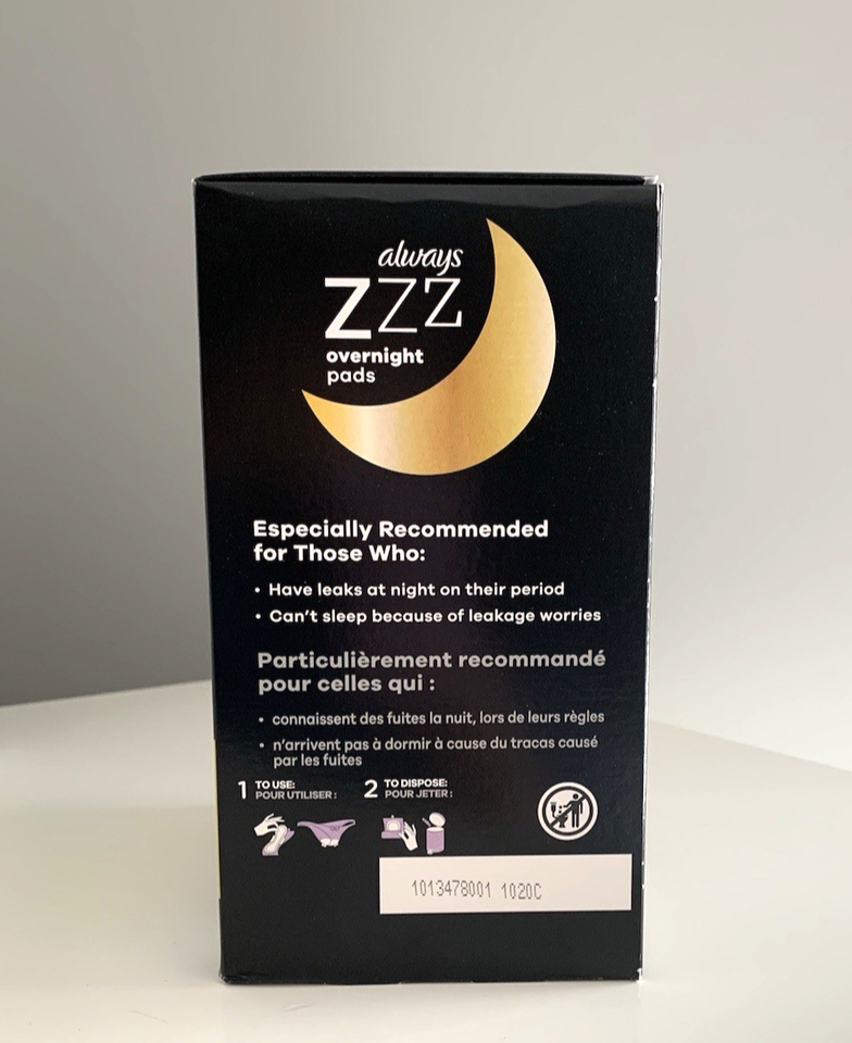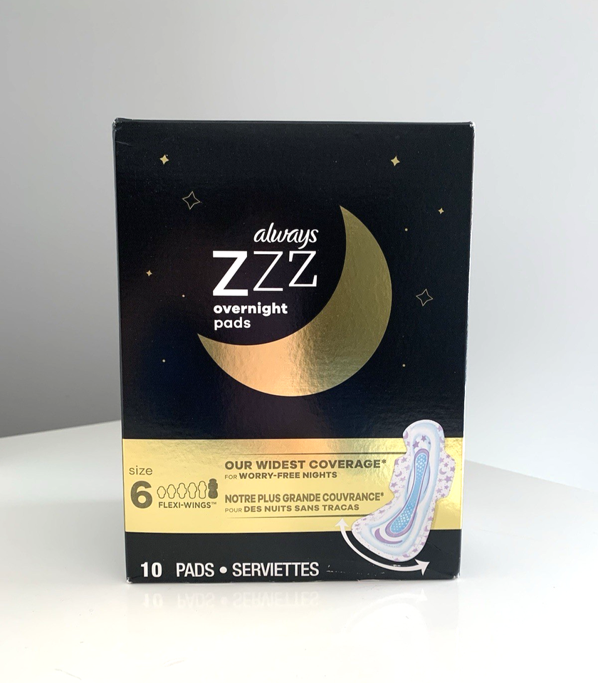 - Always Zzz Overnight Pads with Flexi-Wings Size 6, 10 Ct Sealed Box