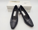 Amalfi by Rangoni Women Black Leather Pumps Heel 7.5 Narrow Career Woven Cap Toe