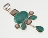 Unique Sterling Pendant with beautiful Green Turquoise and accenting Smoky Topaz Stones