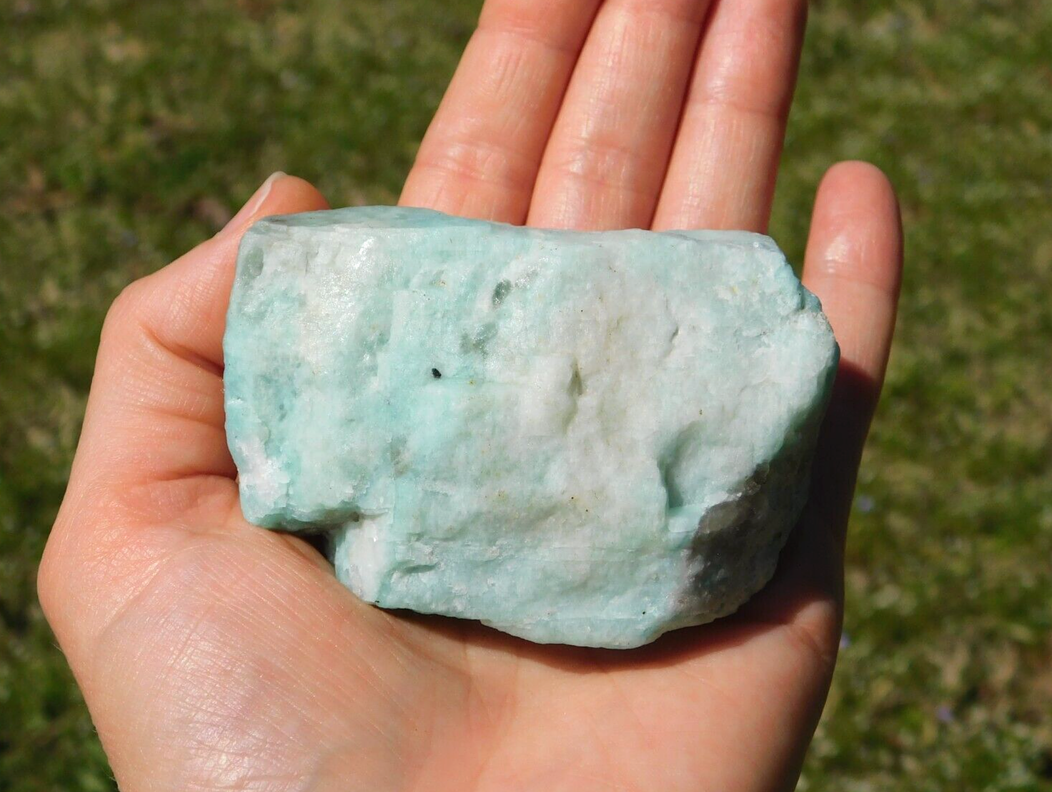 - Amazonite Natural Rough Raw Stone Crystal Peaceful Energy Meditation Display