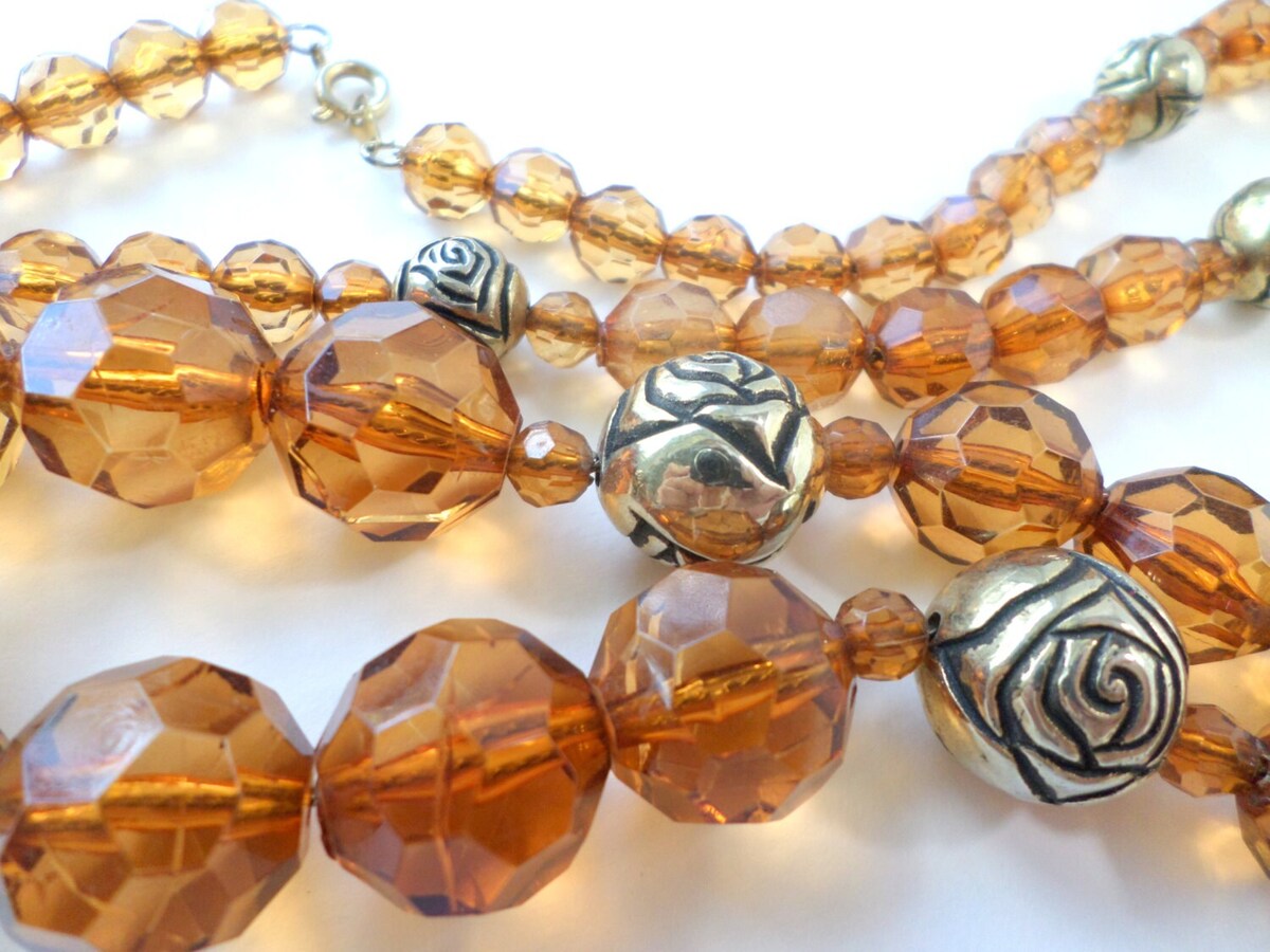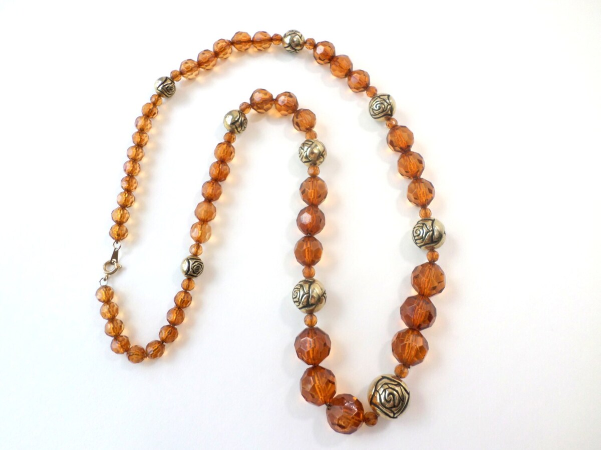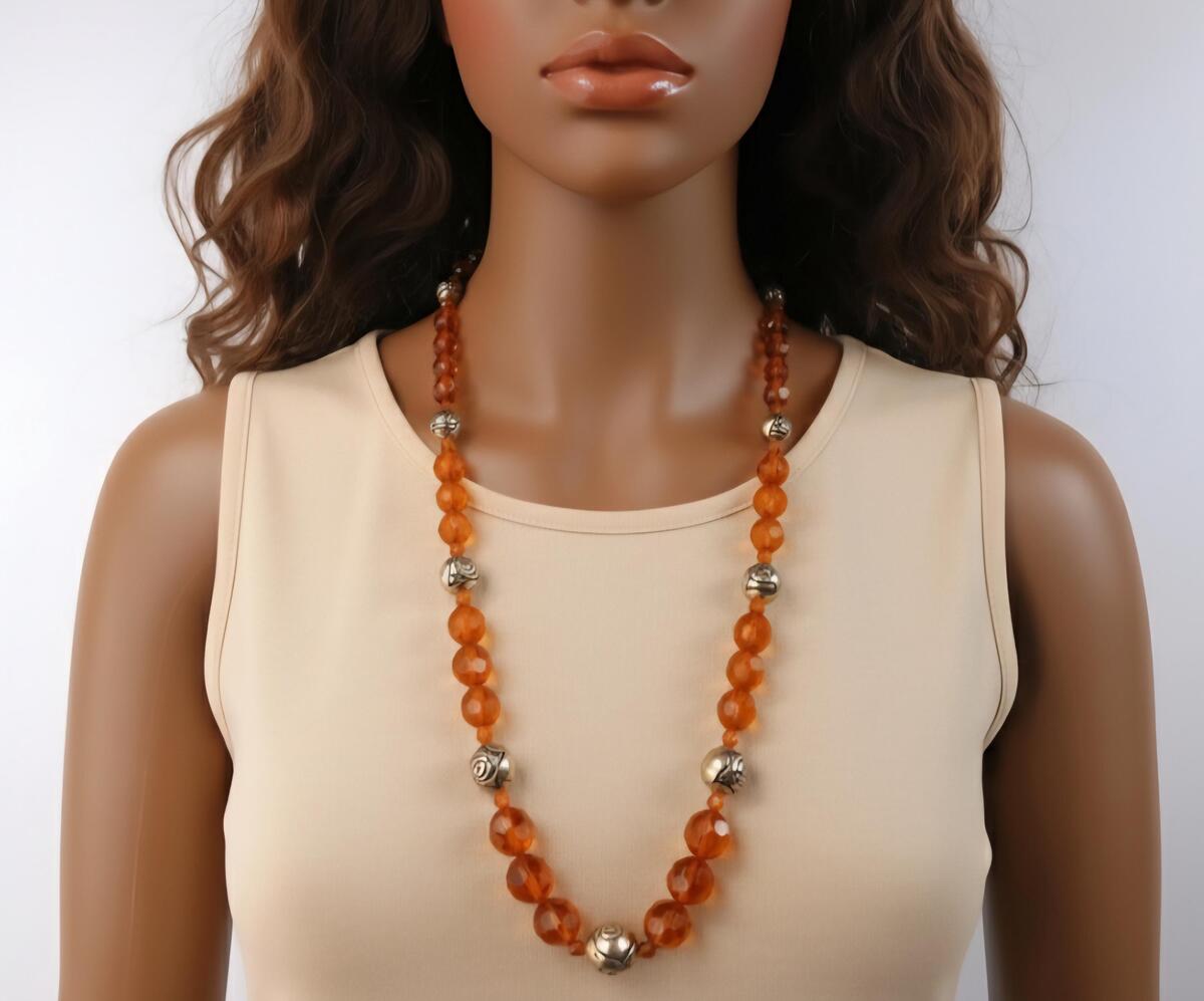 - Amber Bead Necklace, 1960s Signed Chunky Orange Strand