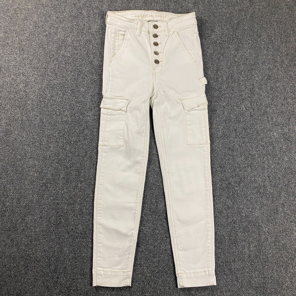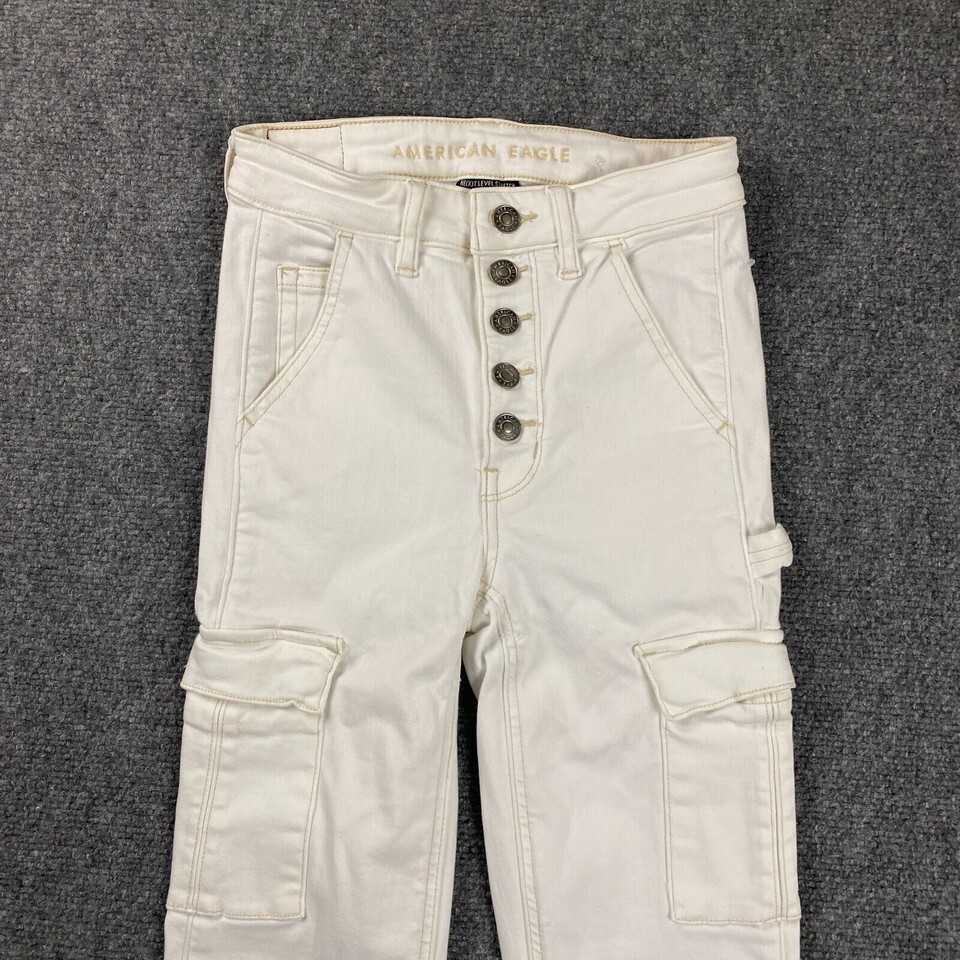 American Eagle Pants Womens 00 X Short White Cargo Button Super Hi Rise Jegging