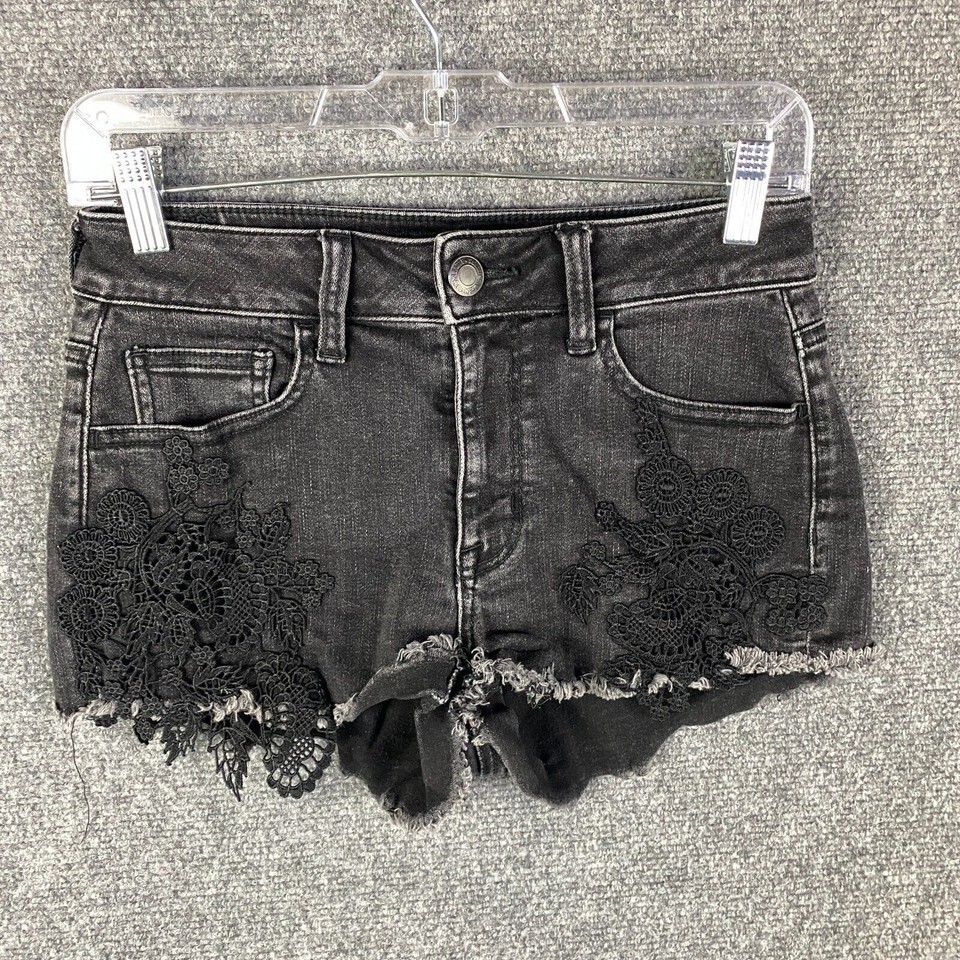 - American Eagle Shorts Women's 4 H-Rise Shortie Denim Gray Cut Off Cotton