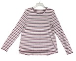 * Features: Vertical striped in white, burgundy and pink. Crew neckline, soft fabric, long sleeves, high-low hemline, natural "worn" look