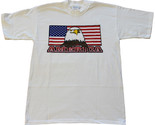 Our T-shirts are all high-quality 100% cotton, white pre-shrunk shirts. The innovative flag image is on the front of the white t-shirt.