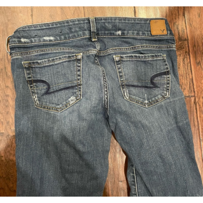 - American Eagle Womens Artist Flare Jeans Blue Stretch Thick Stitch Pockets 8