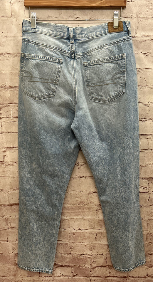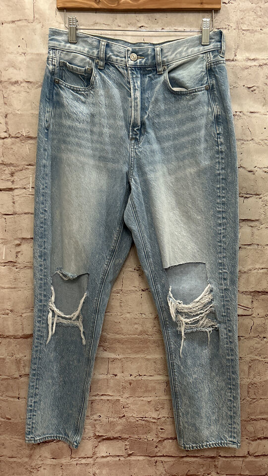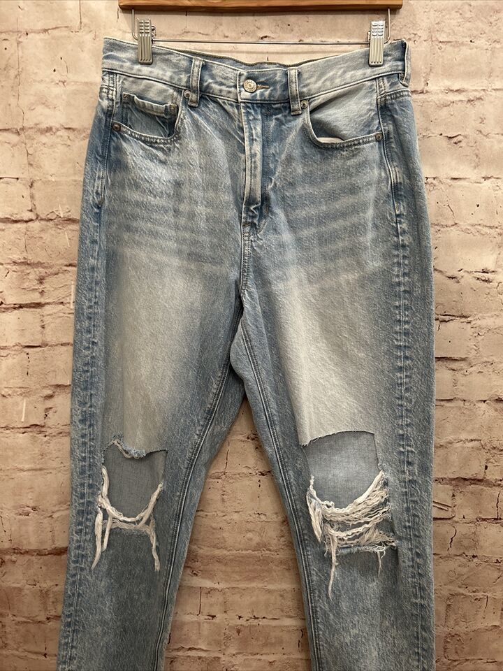 - American Eagle Womens MOM Jean Distressed Denim Light Wash Destroyed Holes Sz 8