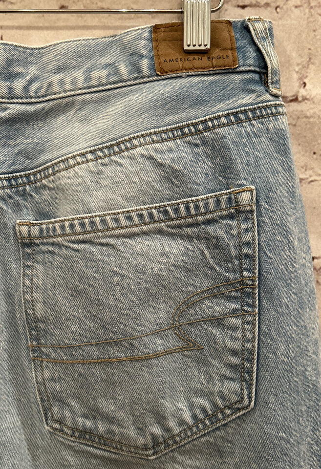 American Eagle Womens MOM Jean Distressed Denim Light Wash Destroyed Holes Sz 8