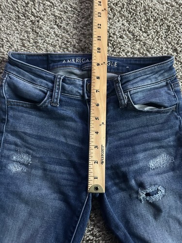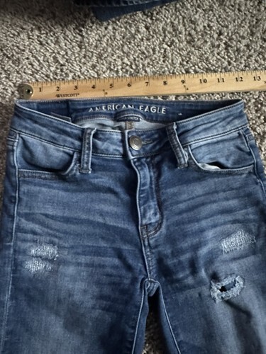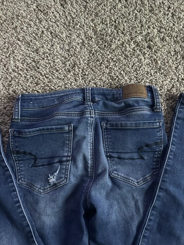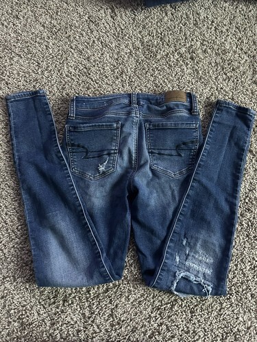 American Eagle super stretch jeggings size 0 distressed Skinny Leg Medium Wash. Condition is Pre-owned. Shipped with USPS Ground Advantage.