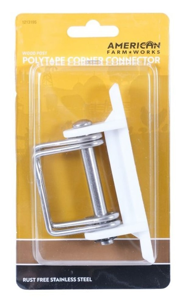 Wood post polytape corner insulator and tensioner for electric fences For all polytape widths up to 2 in. Use this white poly fencing insulator for corners, ends or T-junctions All metal parts are stainless steel for durability High-density polyethylene parts are made with UV inhibitors for added protection