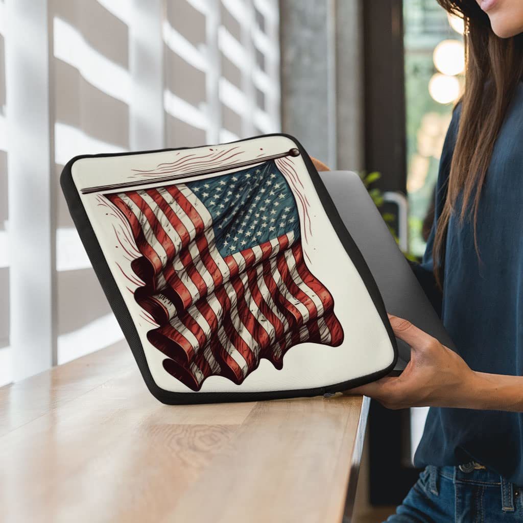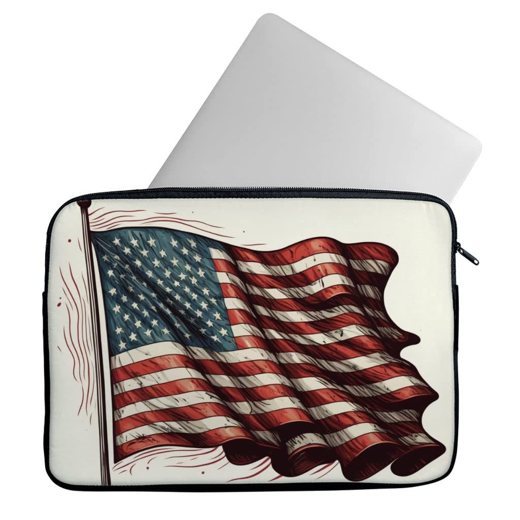 American Flag Graphic 2-Sided Print Mac Book Pro 14" Sleeve - Patriotic Laptop S