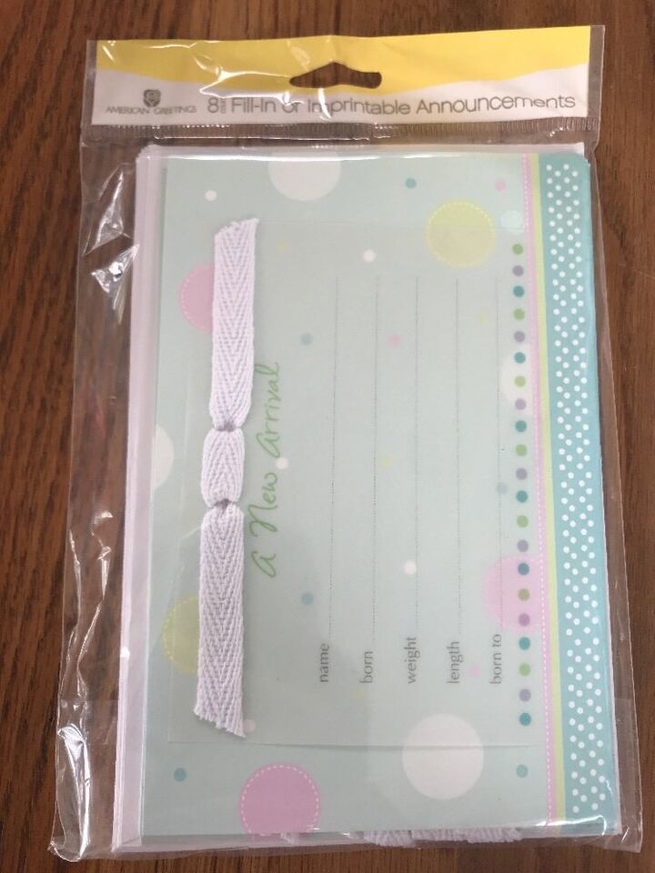 American Greetings 8 Count Full- In Or Imprintable Announcement Ships N 24h