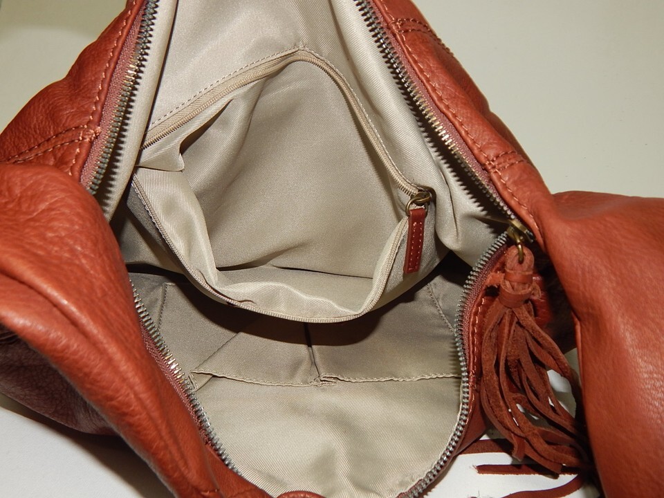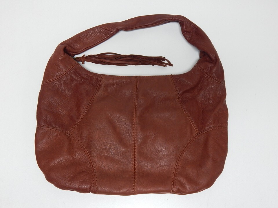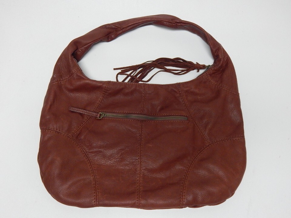 American Leather Co Orin Leather Hobo Bag w/ Draped Tassel & Zip Closure Brandy