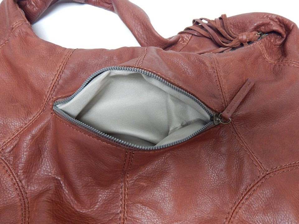 - American Leather Co Orin Leather Hobo Bag w/ Draped Tassel & Zip Closure Brandy