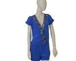 - American Retro Fidji Blue Silk Sequins Embroidery Romper Playsuit Shorts size 40