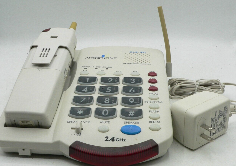 - Ameriphone Clarity CLS-45i Dual Speaker Cordless Amplified Telephone Vintage