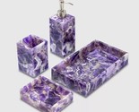 - Amethyst Stone Bathroom Accessories Set Vanity Top Handmade Art with 4 Pecs Gift