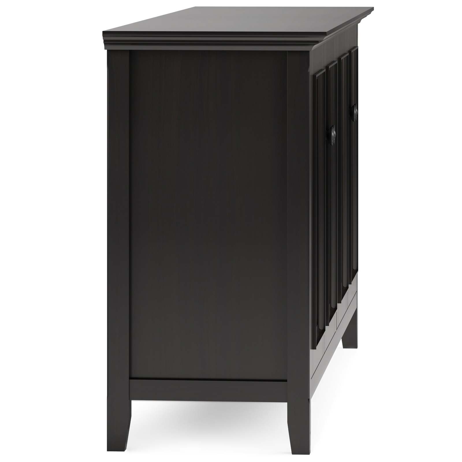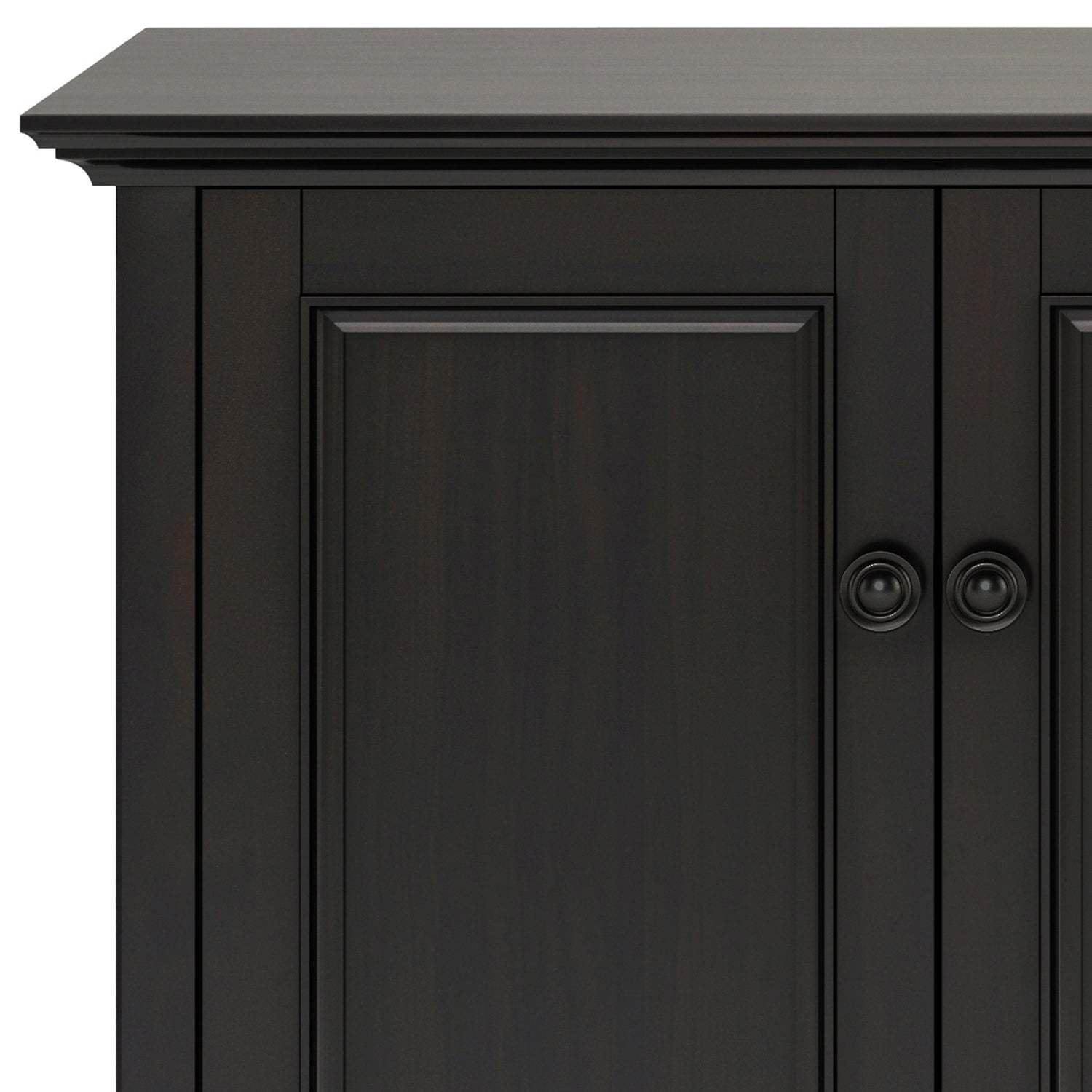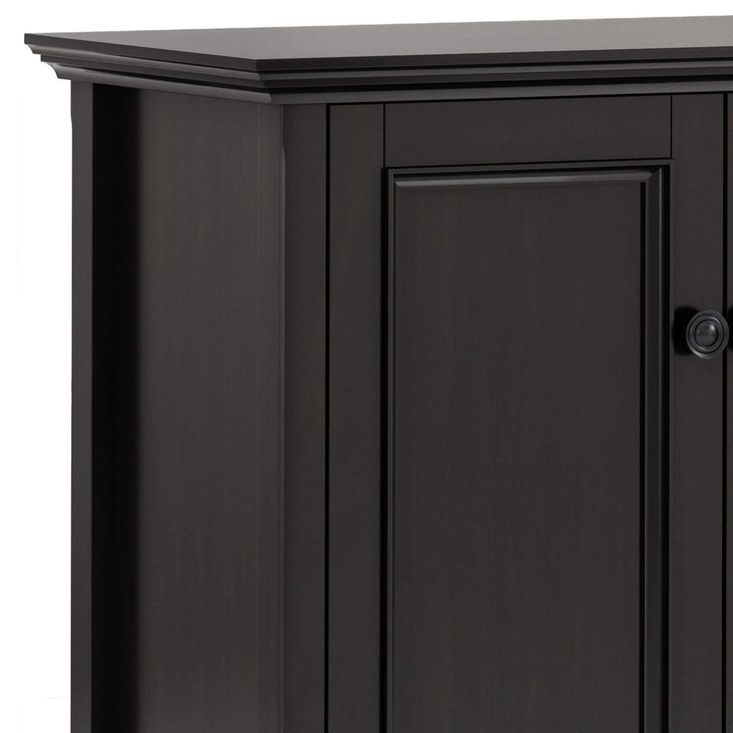 Ample Closed Storage: Behind four framed panel doors are spacious interior compartments with adjustable shelves - perfect for storing dishware, linens, board games, or household supplies.