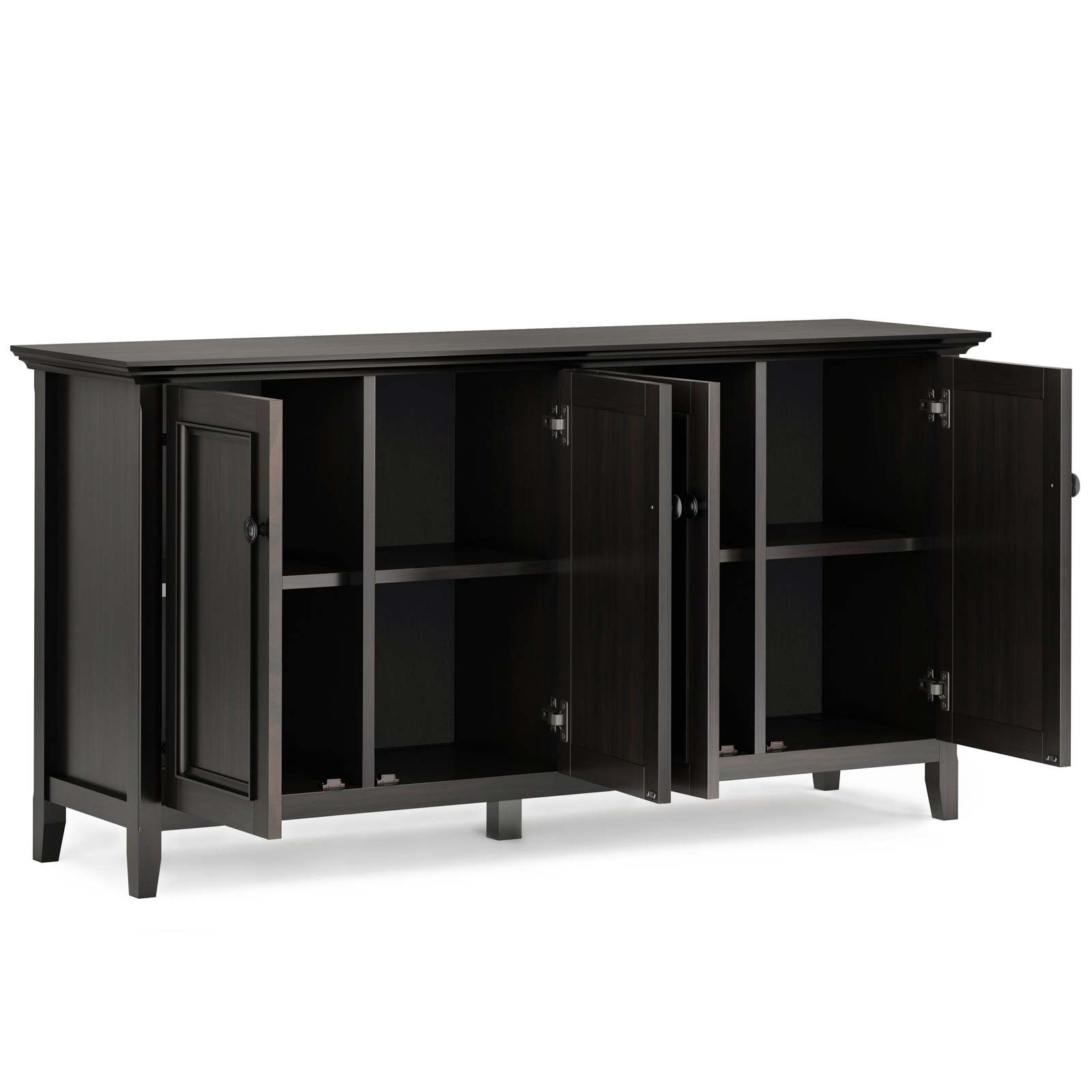 - Amherst 66in Solid Wood 4-Door Storage Cabinet in Hickory Brown