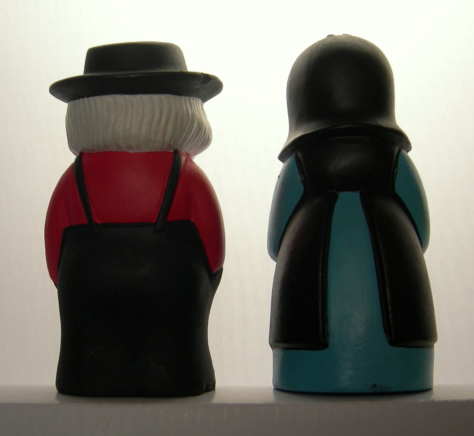- Amish Salt & Pepper Shakers Man Woman Hand Carved Wood