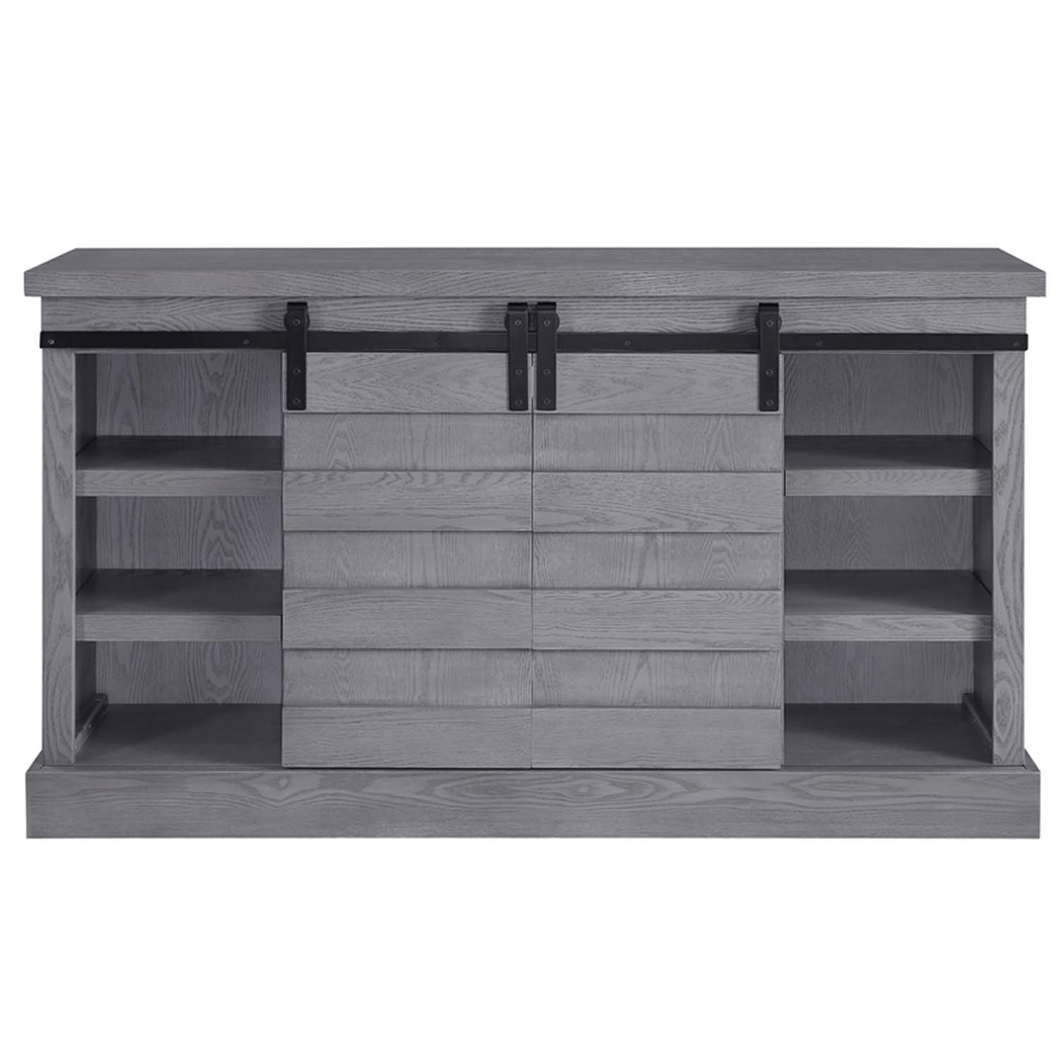 - Amrita 59" TV Stand w/Fireplace, Gray Oak Finish