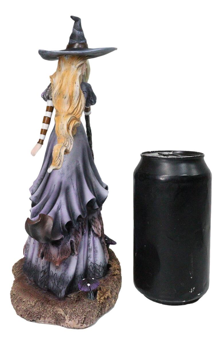 ? Add a spellbinding touch of magic to your Halloween decor with this enchanting witch figurine, inspired by the whimsical fantasy art of Amy Brown. Dressed in flowing black accented with hints of lavender and burgundy, she stands gracefully among mushrooms at her feet, holding her broom as if poised for flight into the moonlit sky. Capturing both mystery and charm, this piece is the perfect way to bring a dash of fantasy and seasonal allure to your display.