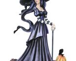 ? Celebrate Halloween with this Amy Brown-inspired witch figurine. She wears a flowing moody dress and tall hat, her hair caught in a gentle breeze, standing beside a festive pumpkin. Ravens perch on her hat and the pumpkin, adding a touch of spooky charm. A perfect gift for any fantasy or witch-themed collection!