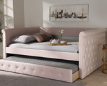 - Amy Light Pink Velvet Fabric Upholstered Full Size Daybed w/Trundle
