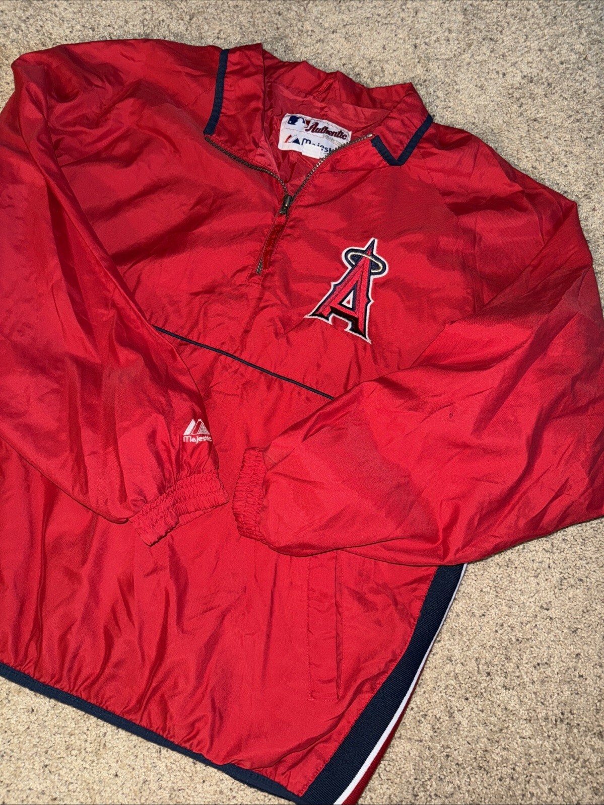 - Anaheim Angels Majestic Jacket Large Red Pullover 1/3 Zip Chest Patch MLB