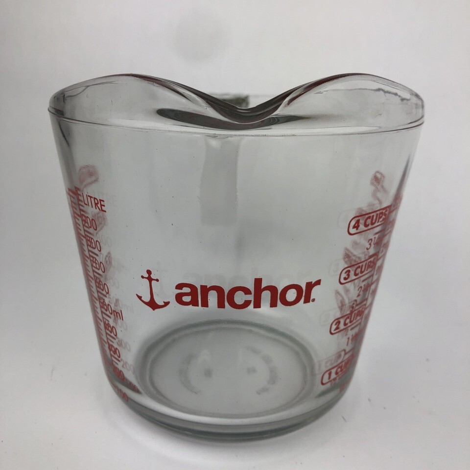 - Anchor Hocking 4 Cup 1 Quart Glass Liquid Measuring Cup Red Letters - USA Made