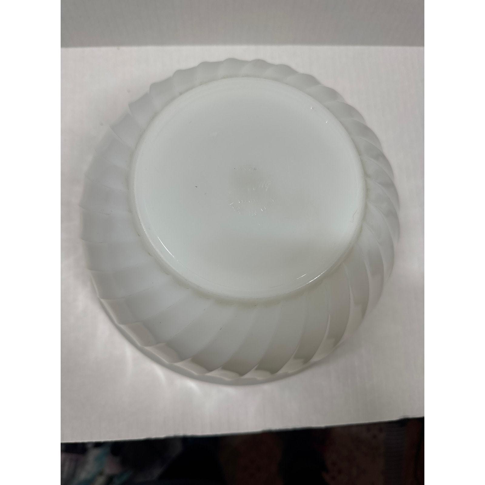 - Anchor Hocking Fire King Milk Glass Swirl 9” x 41/2” White Bowl
