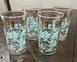 Anchor Hocking Glasses Pale Blue Hibiscus Floral Gold Greek Key Pattern Tumbler.
