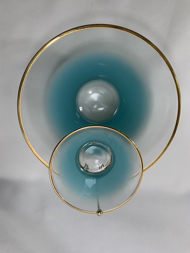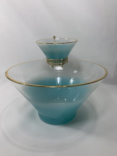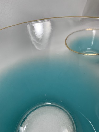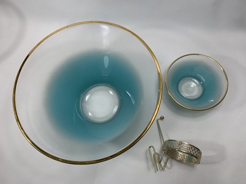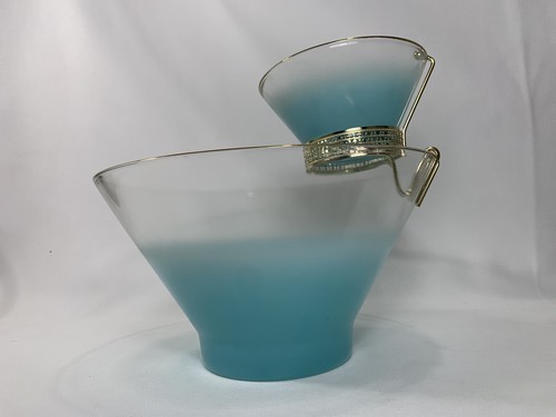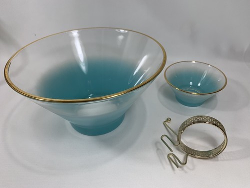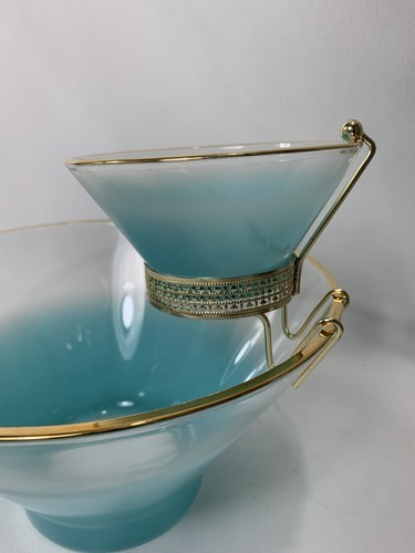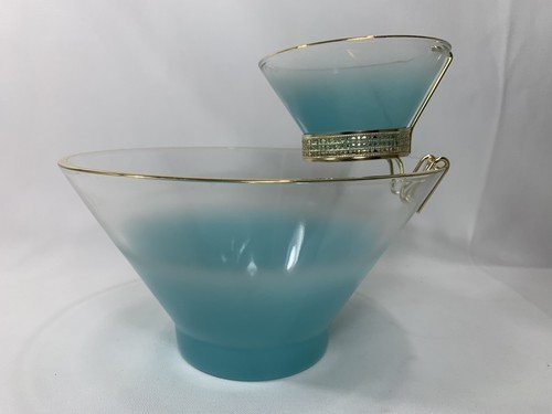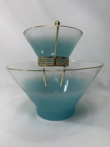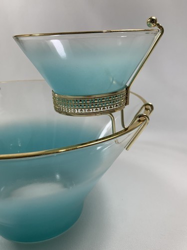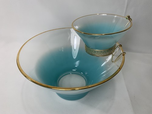 - Anchor Hocking Misted Teal Chip Dip Salad BOWL Set Serving Dishes w/Bracket